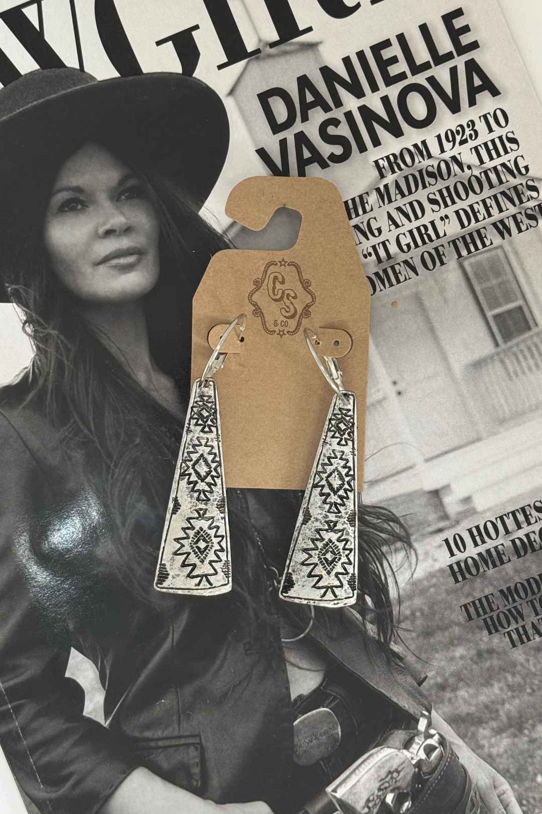 Add a bold dash of western artistry to your everyday look with these Aztec Spirit Hoop Earrings. Crafted from gleaming silver, each hoop holds a triangular pendant etched with intricate Aztec-inspired detailing. The balance of the smooth hoop with the sharp geometric pendant creates a striking mix of modern minimalism and heritage design. Lightweight yet eye-catching, these earrings are versatile enough to pair with denim and boots for a rodeo or to dress up your evening outfit with a touch of rugged elegance.