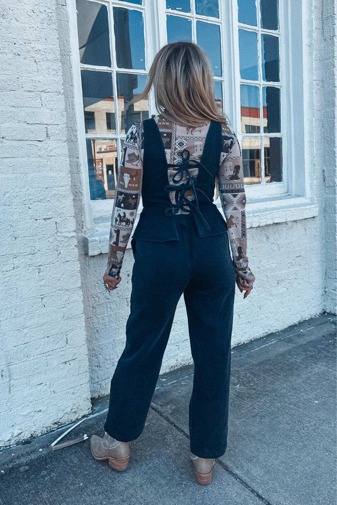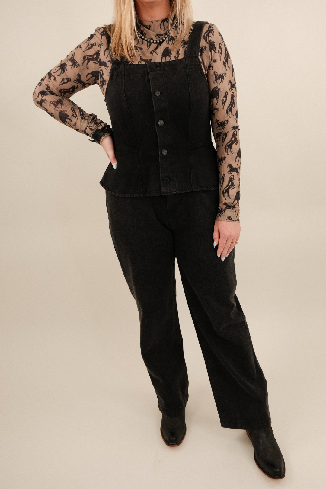 Pair the Bandida Denim Jumpsuit with our Wild Mustang Mesh Top for the ultimate cowgirl-chic look that turns heads at concerts, rodeos, or nights out.