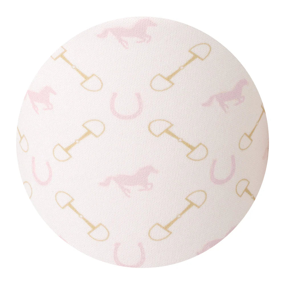 Designed with a western flair — pink horses & gold horseshoes