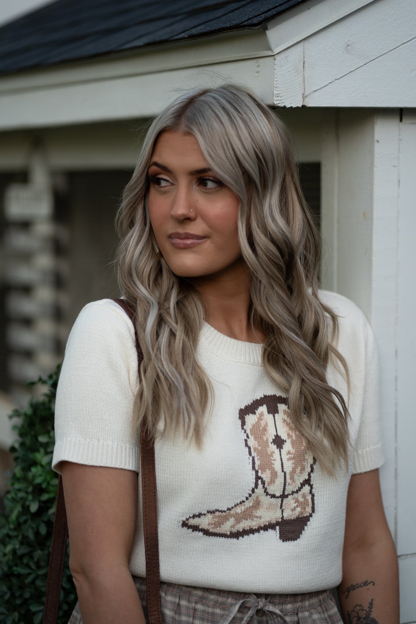 Embrace your inner cowgirl with this stylish and cozy cream, Cowgirl Spirit Sweater. Featuring a large cowboy boot graphic in brown and tan, this cropped sweater is perfect for pairing with your favorite jeans and cowboy boots. The round neckline is accentuated with a thicker hemline, adding an extra touch of detail to the relaxed fit. Designed with comfort and style in mind, this sweater brings a Western flair to any casual outfit.