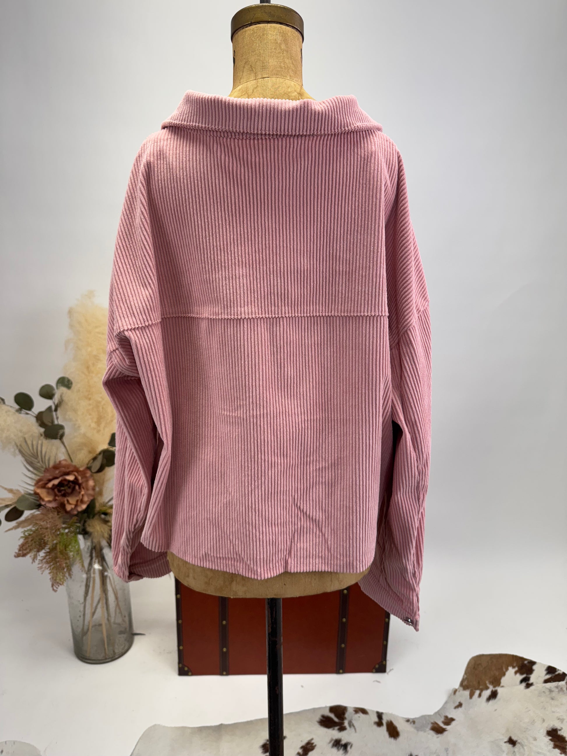- Baby pink corduroy for a soft and stylish touch