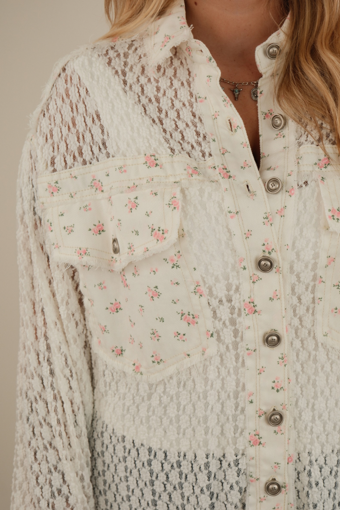 The Floral & Lace Jacket offers the perfect combination of classic denim and delicate details, making it the ideal piece for adding a stylish, romantic touch to any outfit.