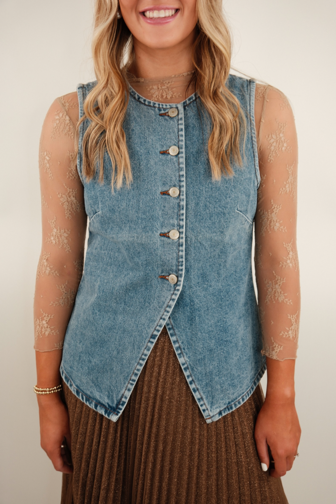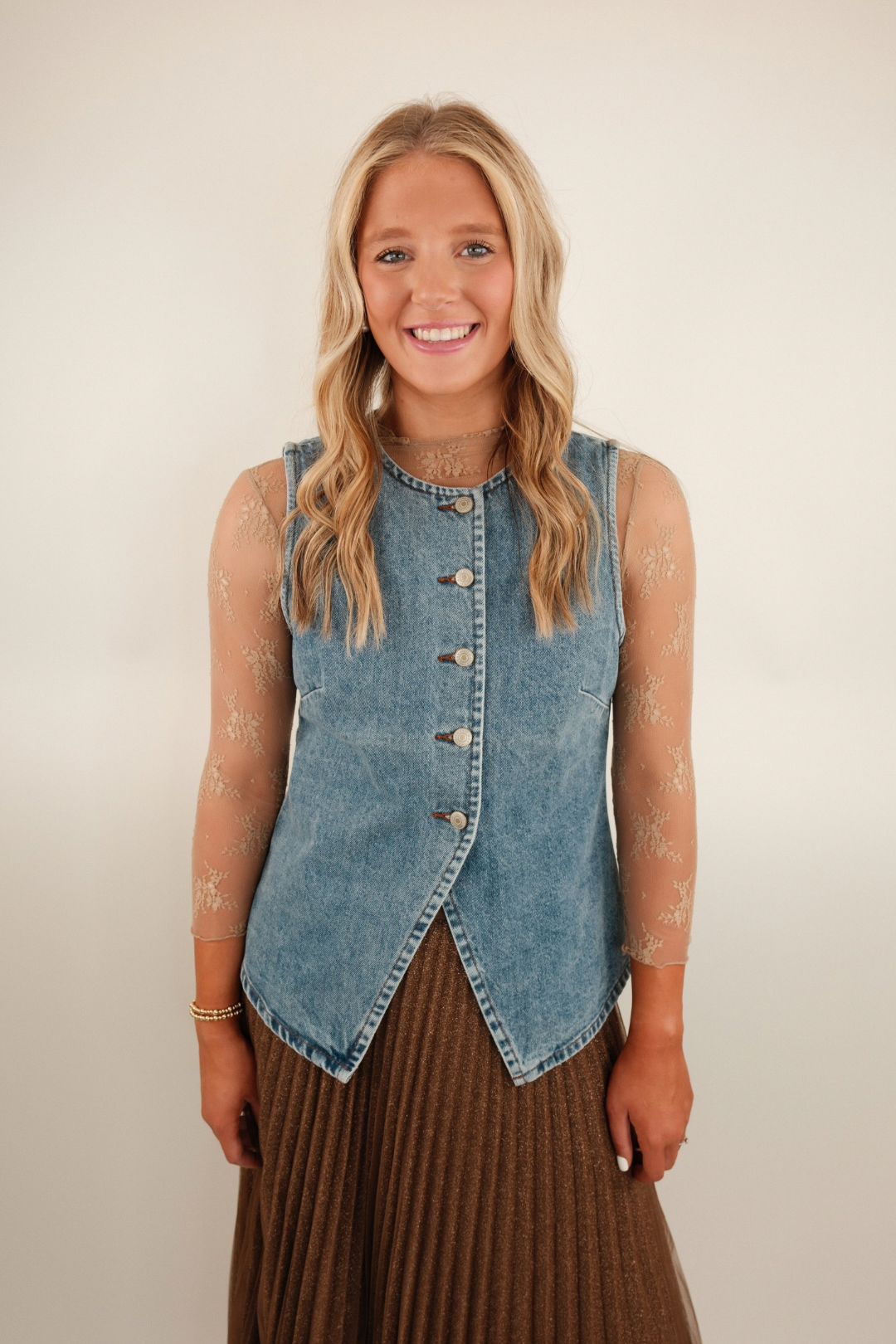 Durable yet versatile, this denim vest is a year-round essential that transitions seamlessly from ranch days to rodeo nights.