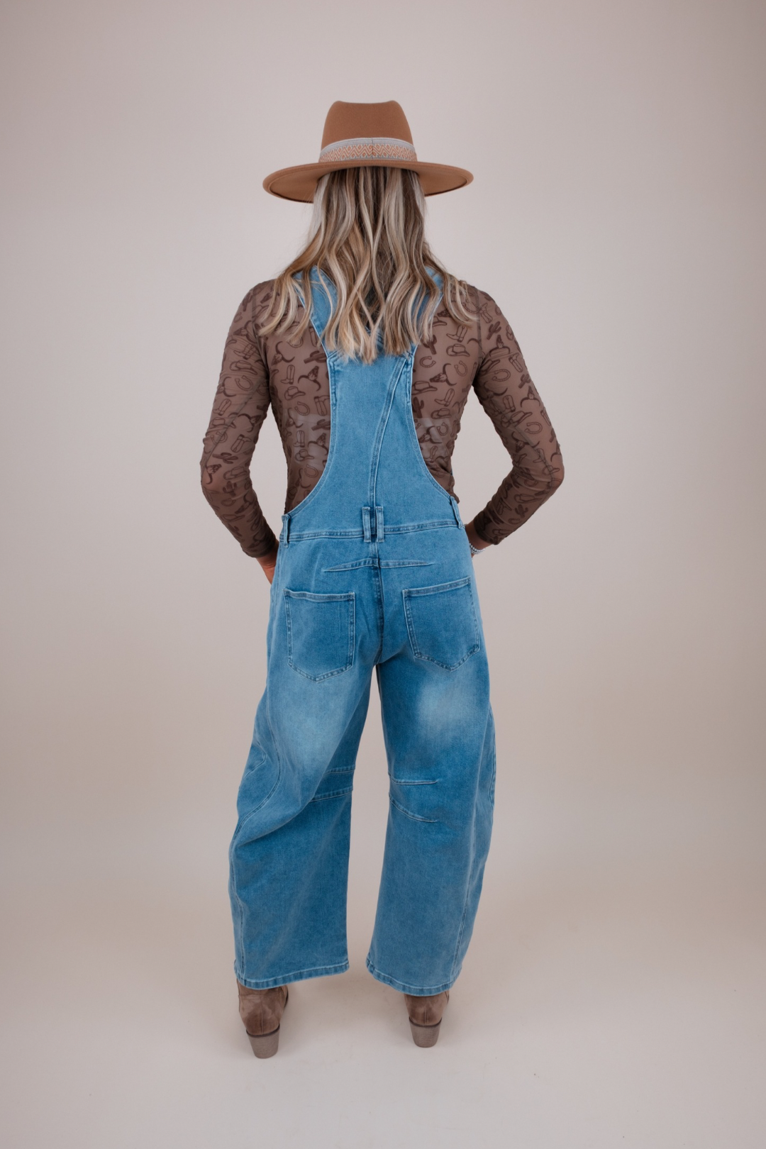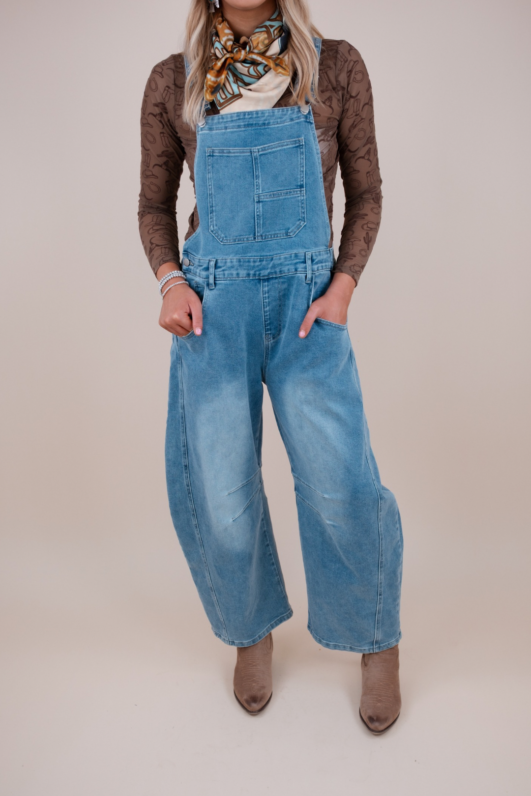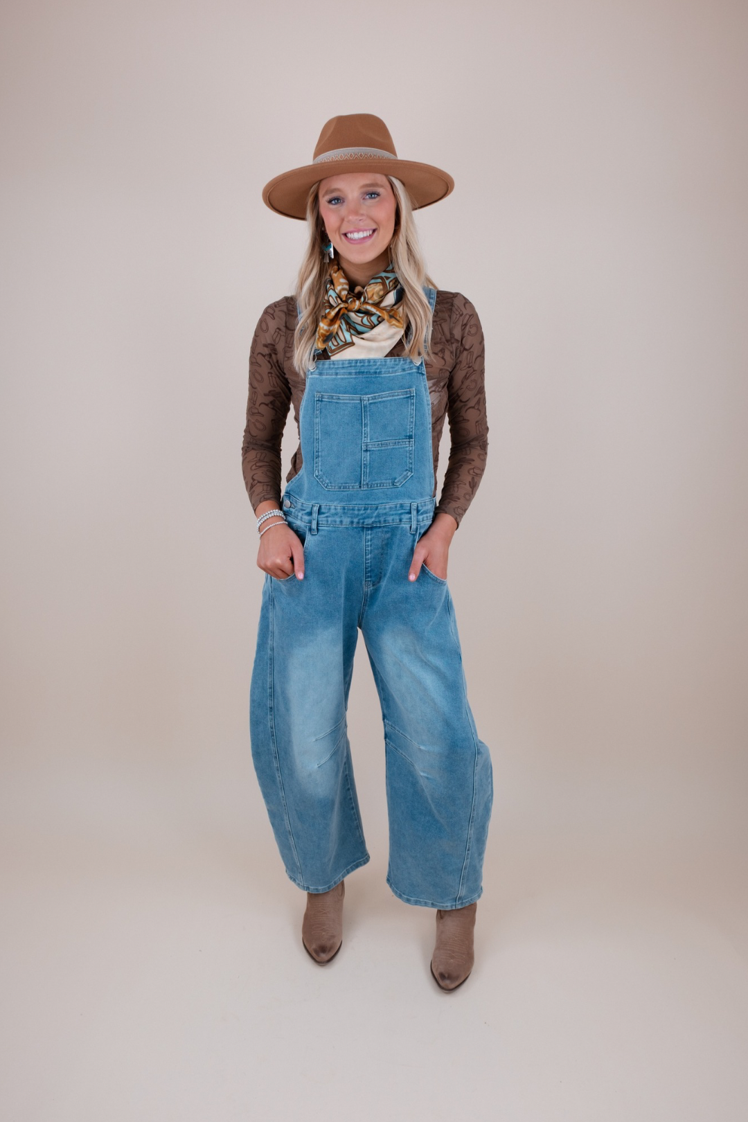 The Homestead Barrel Overalls are a modern twist on a timeless classic. Crafted from medium wash denim, these overalls feature a relaxed barrel-leg silhouette for a fresh, flattering shape that’s both comfortable and bold.