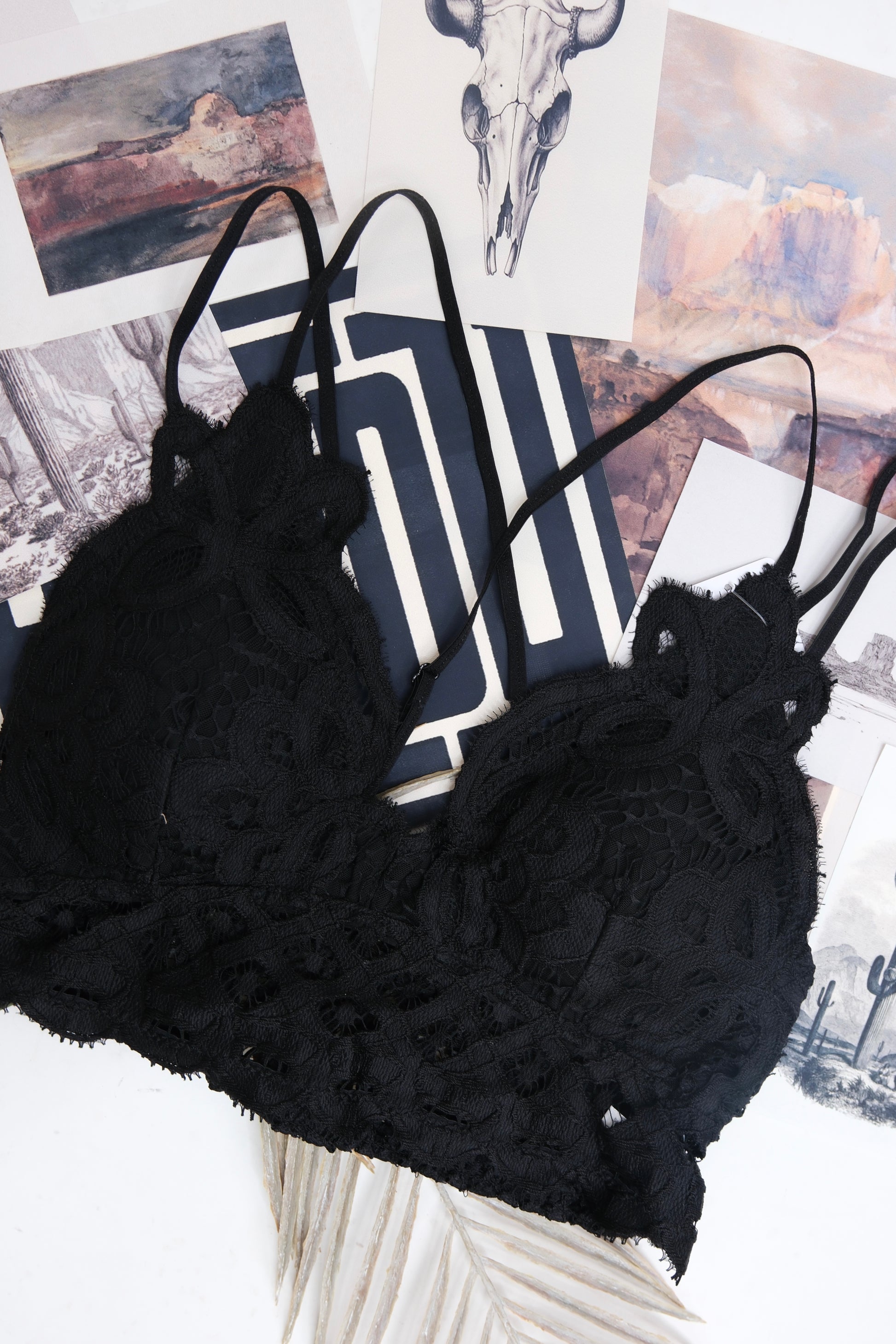 This Lace & Lasso Bralette is a must-have for effortless layering and comfort. Featuring delicate lace detailing, it adds a feminine touch to any outfit. The thin straps and soft padding provide support while keeping the look light and breathable. Perfect for layering under sheer tops, dresses, or loose-fitting tees, this bralette is versatile and stylish. Whether you're lounging or looking to add a hint of elegance to your outfit, this bralette offers the perfect combination of comfort and chic style.