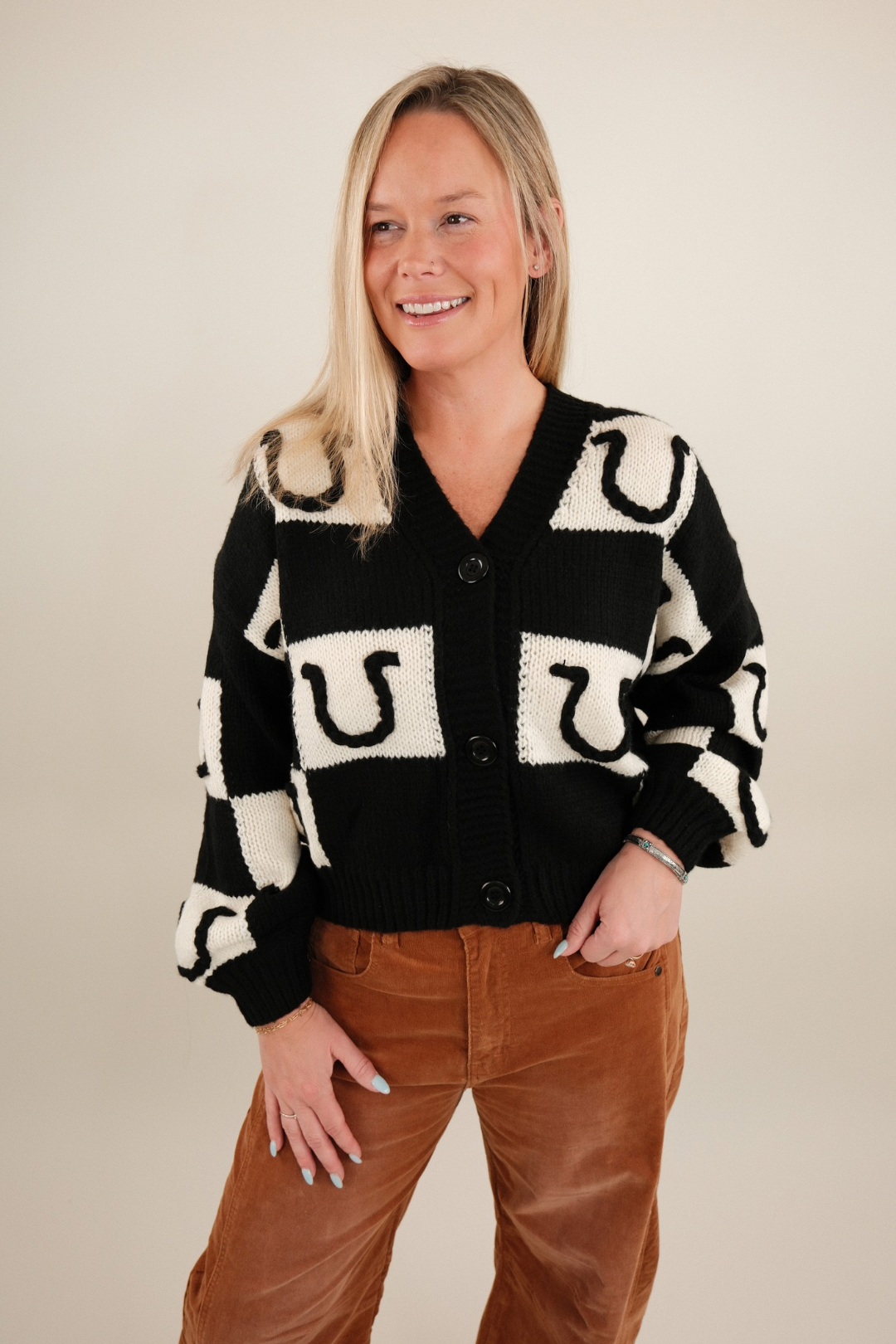 Equal parts playful and versatile, this cardigan is perfect for rodeo nights, everyday western wear, or simply adding a touch of luck to your look.