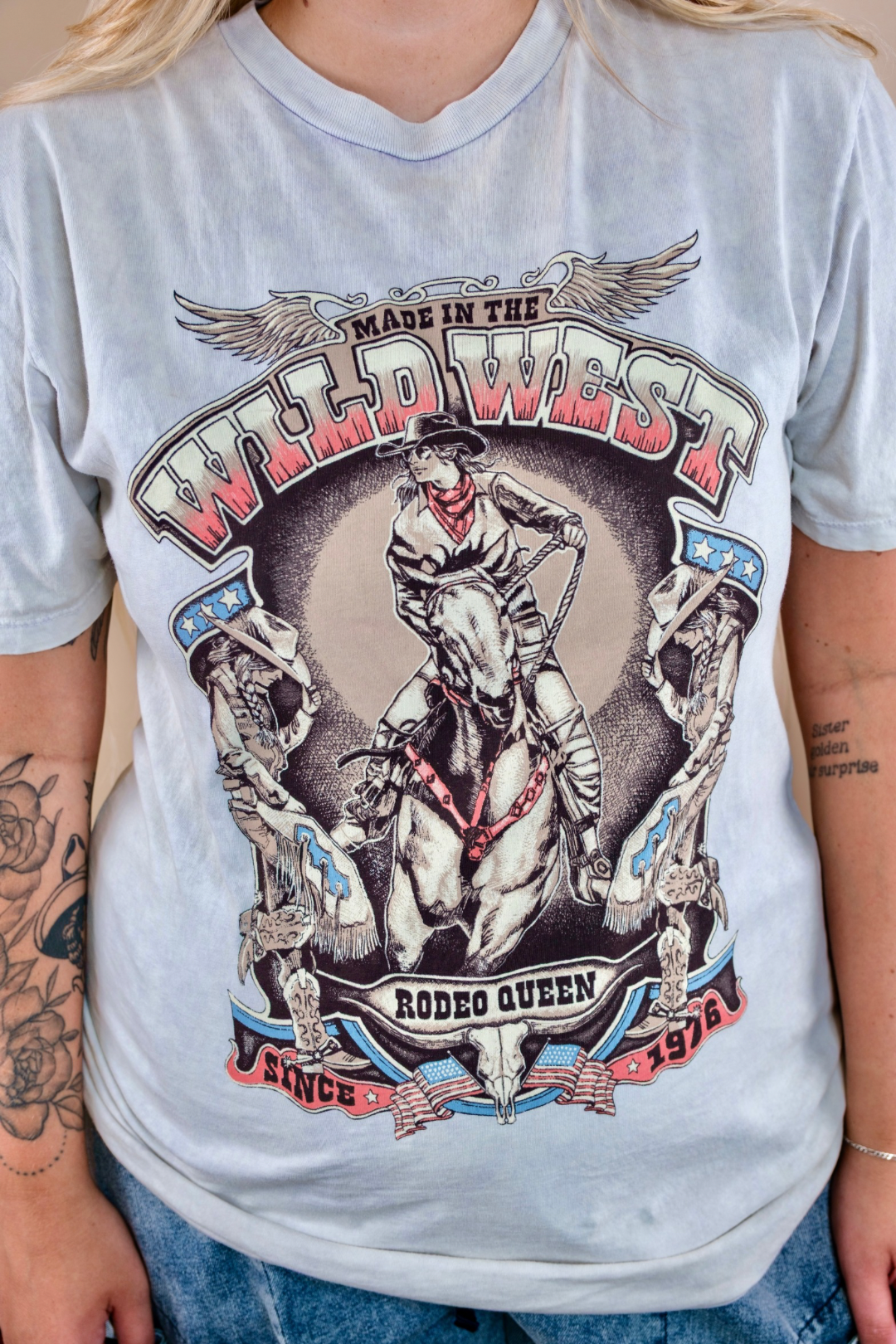 This Made In The Wild West graphic tee is perfect for adding a touch of the cowboy lifestyle to your everyday look, effortlessly blending style with comfort.