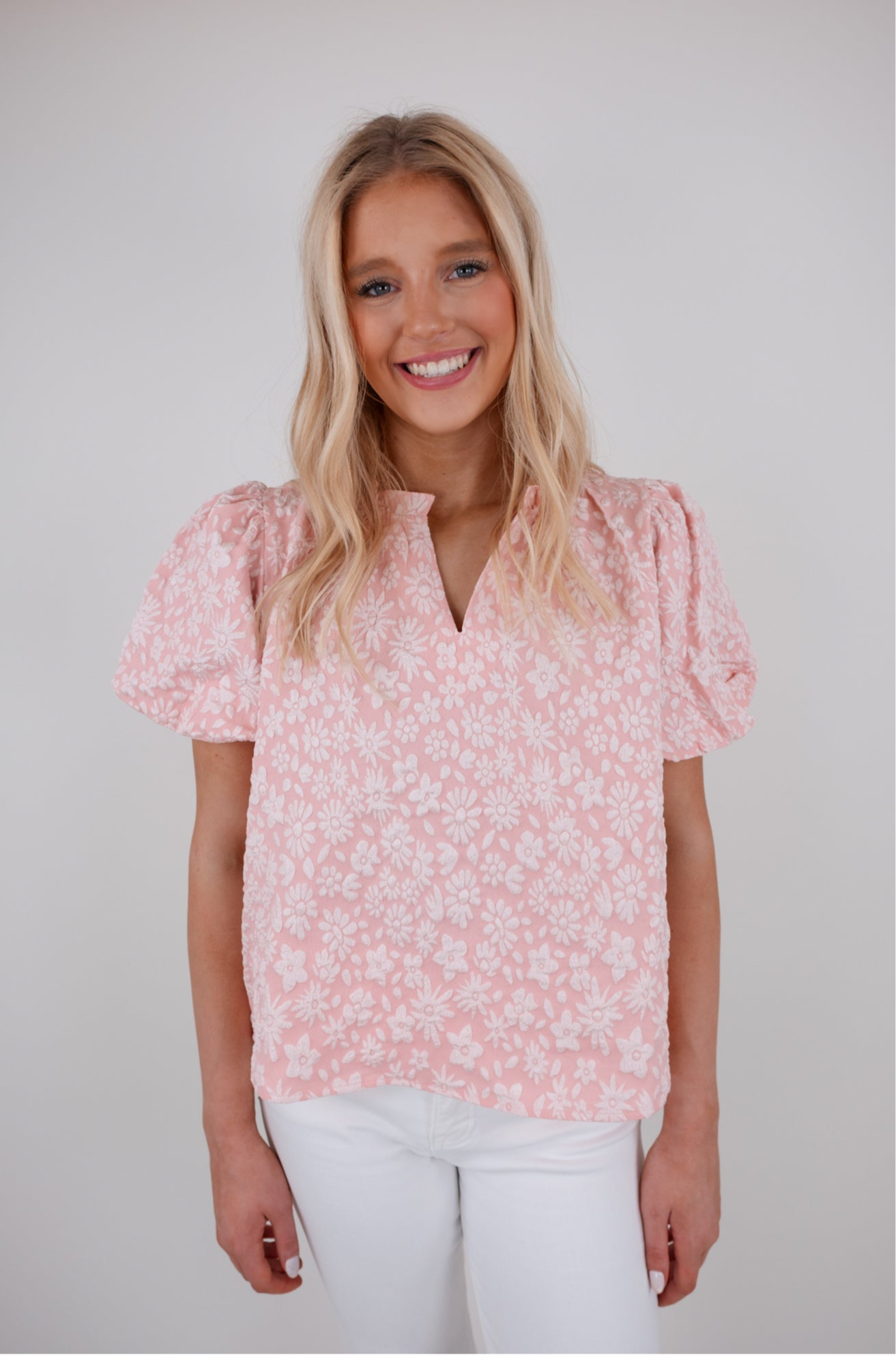 Bring soft charm to your wardrobe with the Prairie Bloom Blouse—a textured floral beauty that’s as dreamy as a sunset over the plains. Featuring short balloon sleeves, a flattering v-neckline, and a delicate ruffle collar, this blouse is full of vintage-inspired details that feel right at home on the modern cowgirl. Dress it up with a skirt or keep it casual with denim—either way, it’s a standout.