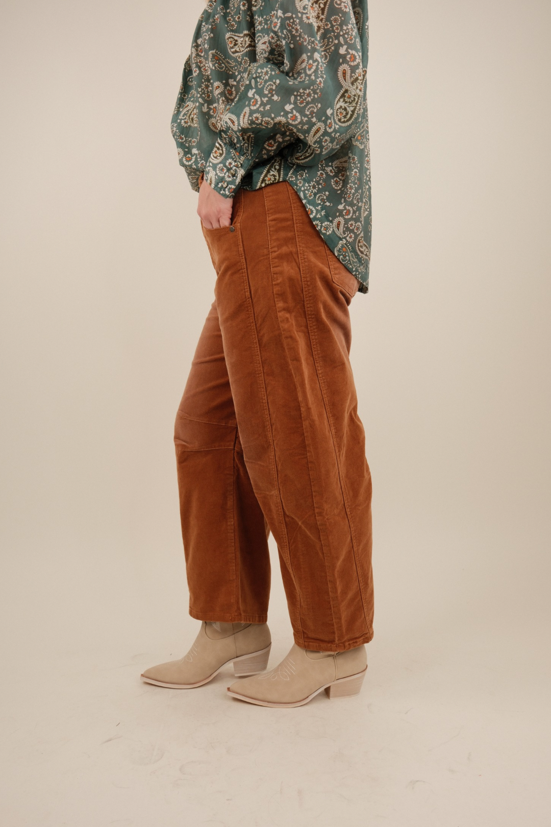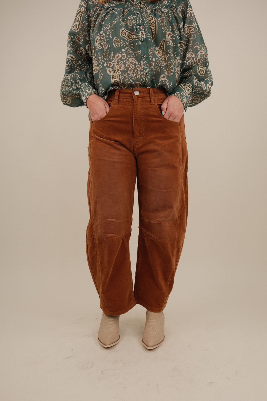The Rust Canyon Corduroy Barrel Pants bring a worn-in western edge to a modern silhouette. Designed in a rich rust hue, these pants feature a relaxed barrel-leg cut that’s both flattering and comfortable. Subtle stretch in the corduroy fabric allows for ease of movement, while natural signs of wear give them a broken-in, vintage-inspired vibe that feels like an old favorite from the very first wear.