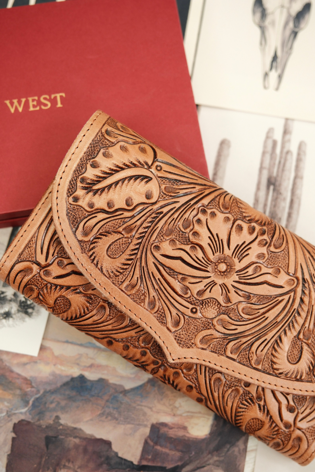 Material: 100% genuine leather with hand-tooled western scrollwork
