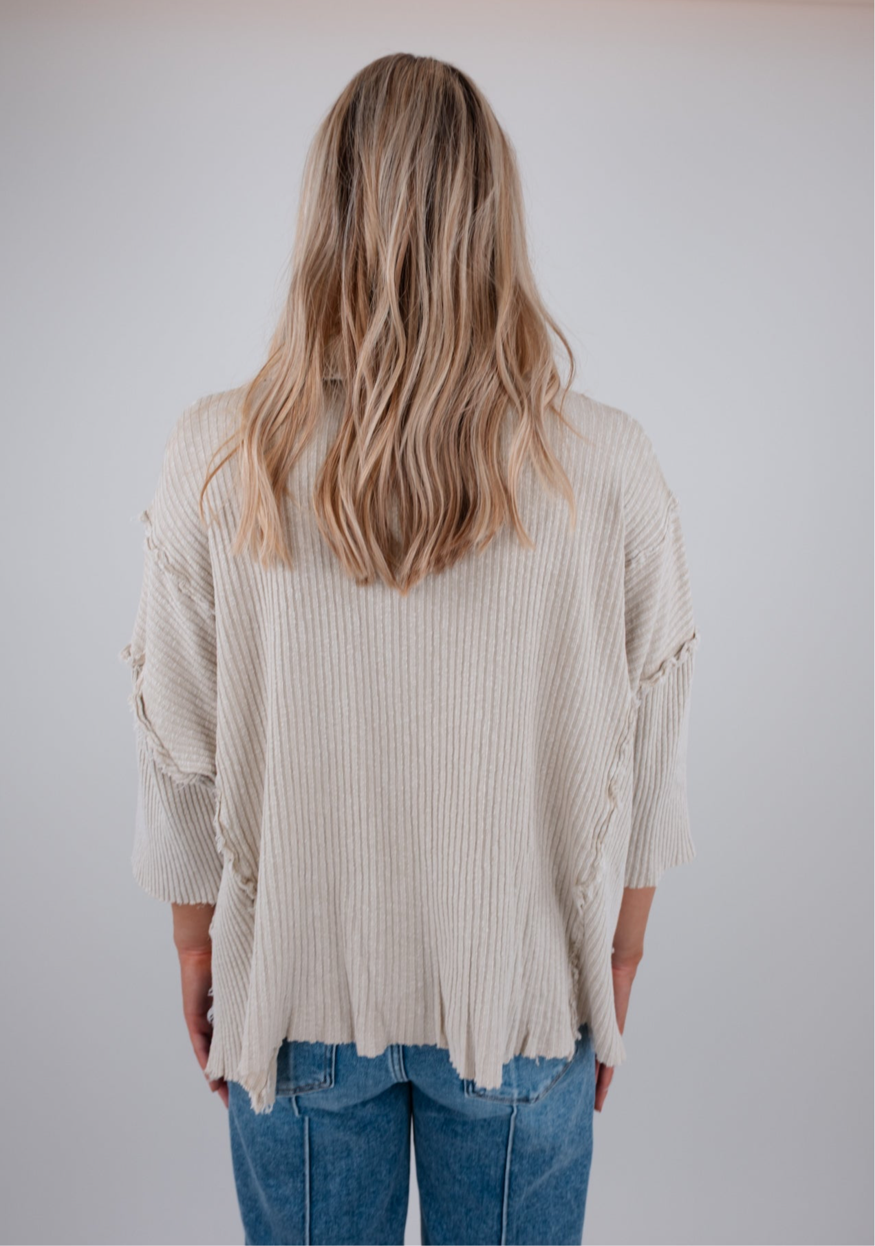 The Saddle Stitch Ripped Top combines comfort, style, and modern details to create the ultimate laid-back look. Featuring a V-neck with a collar, this top is both flattering and chic. The front pockets add practicality, while the raw seams give it a rugged, on-trend feel. With 3/4 hemless sleeves and slit sides, this top offers a relaxed, comfortable fit that pairs effortlessly with denim, skirts, or cowboy boots.