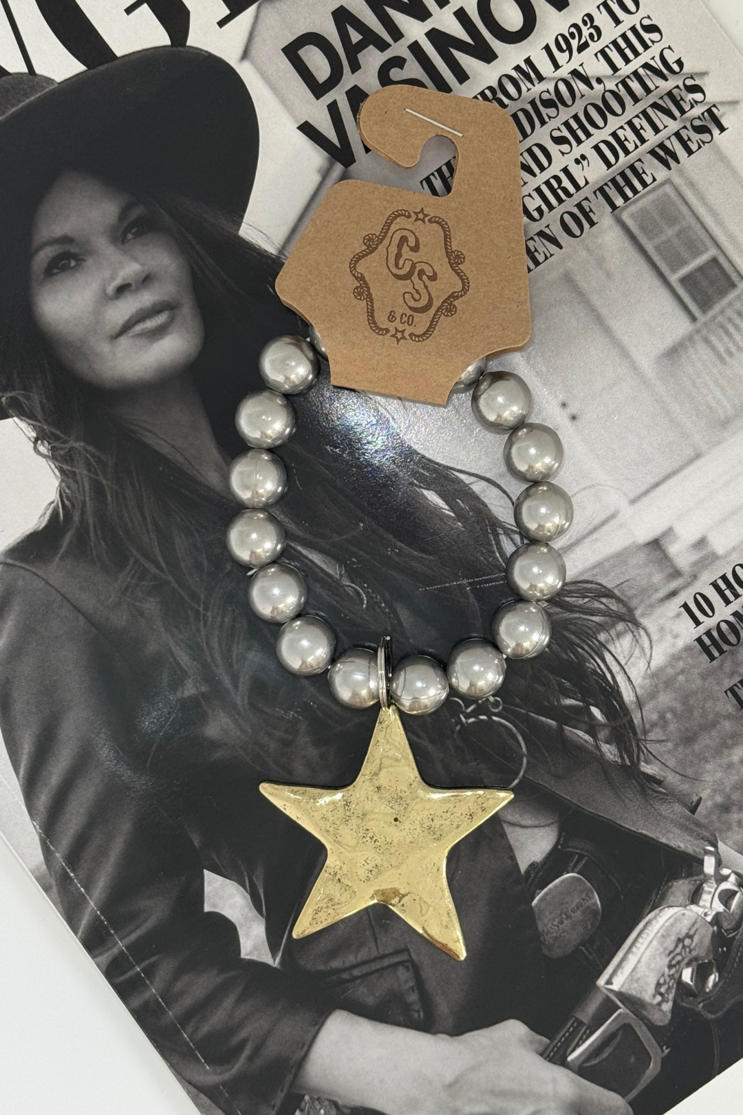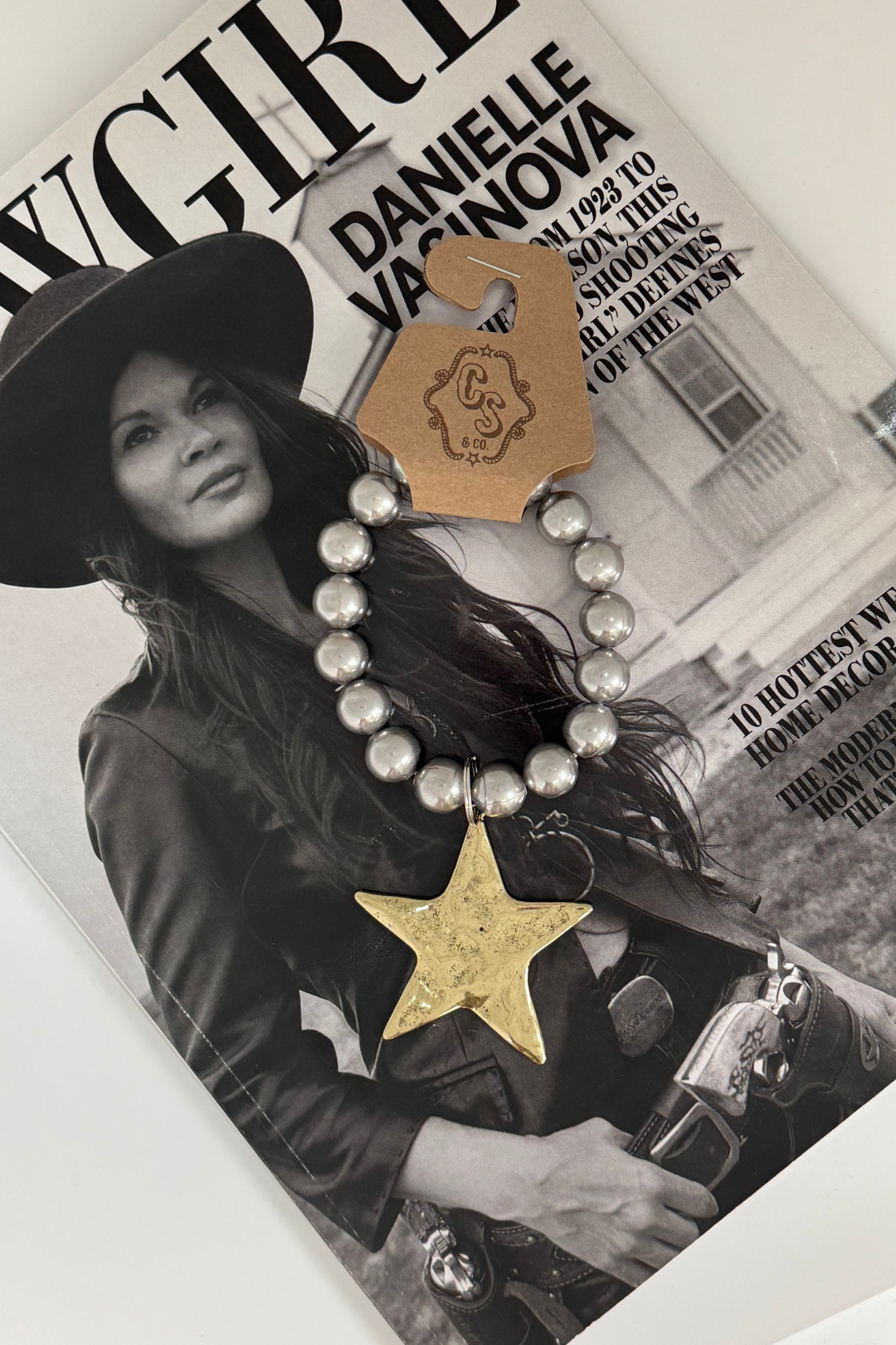 Add a touch of western glam to your everyday look with our Starlight Charm Stretch Bracelet. Featuring chunky silver beads strung on a stretchy band for comfort and easy wear, this bracelet is finished with a bold star charm that shines with effortless charm. Available in both silver and gold, it’s the perfect piece to stack with your favorites or wear solo for a statement that embodies rustic elegance and modern style.