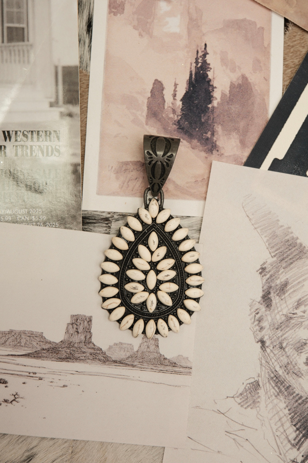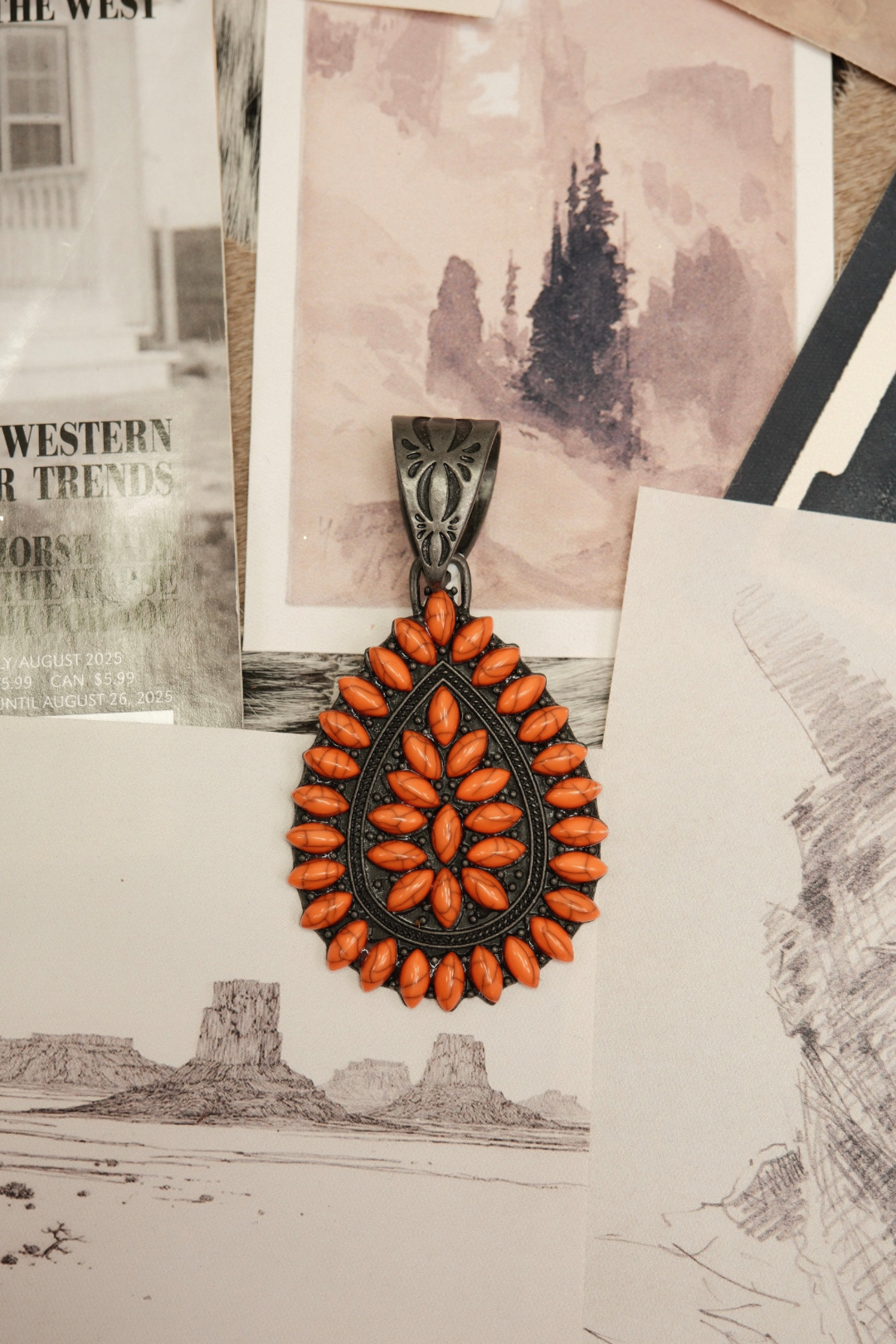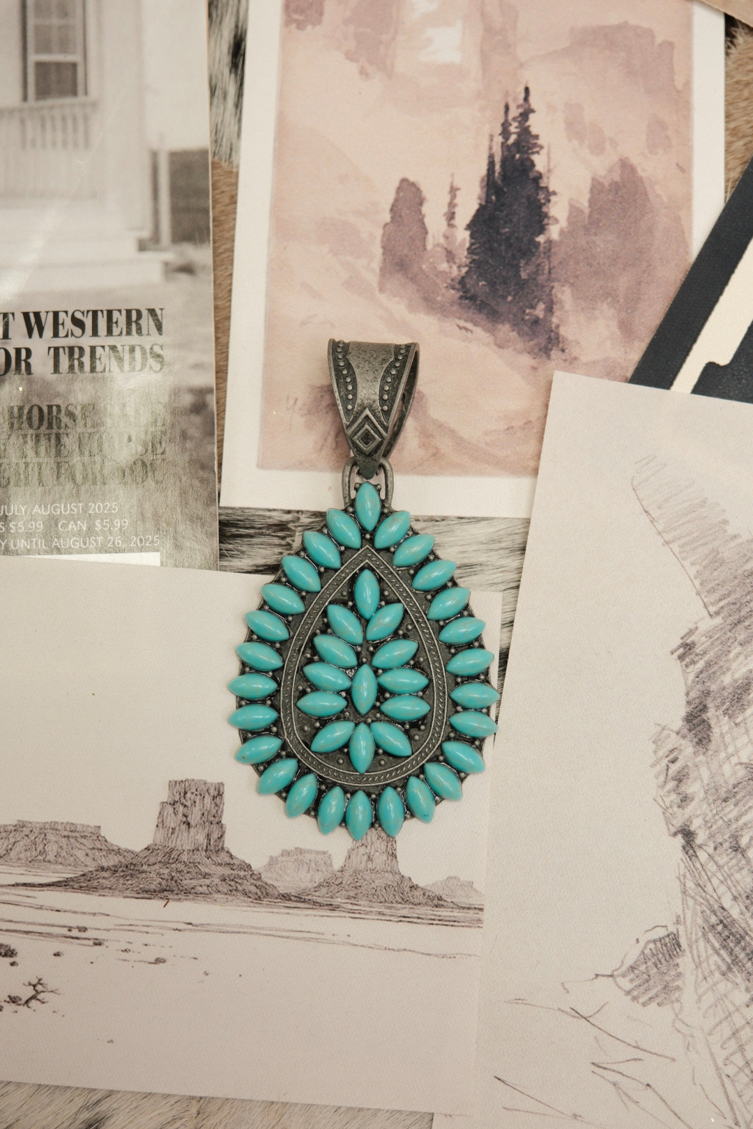 Add a bold pop of western elegance to your custom scarf necklace with our Stone Teardrop Scarf Slide. Designed in a classic teardrop shape, this metal slide is completely covered in shimmering stones that catch the light beautifully. Its vintage-inspired design pairs perfectly with our silk scarves, allowing you to create a one-of-a-kind accessory that reflects your personal style. Available in vibrant turquoise, warm orange, or classic white, each color adds a unique flair to your western look.