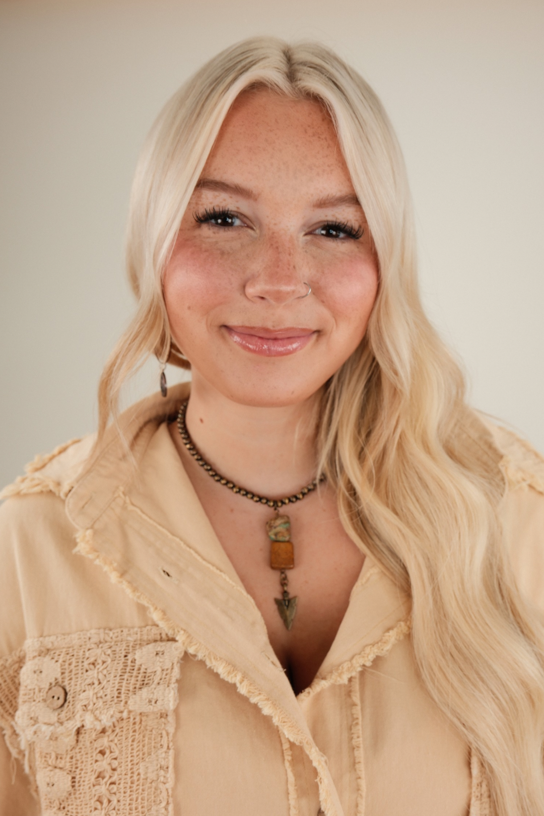 Crafted with rustic charm and southwestern soul, our Texas Arrow Turquoise Choker is a one-of-a-kind statement piece designed and handmade in Texas. This choker-length necklace features warm bronze beads paired with two genuine turquoise stones that exude natural beauty. The focal point is a bold bronze arrowhead pendant, giving it a rugged yet refined western allure. Perfect for adding authentic southwestern style to your everyday look or for making a statement at special events.