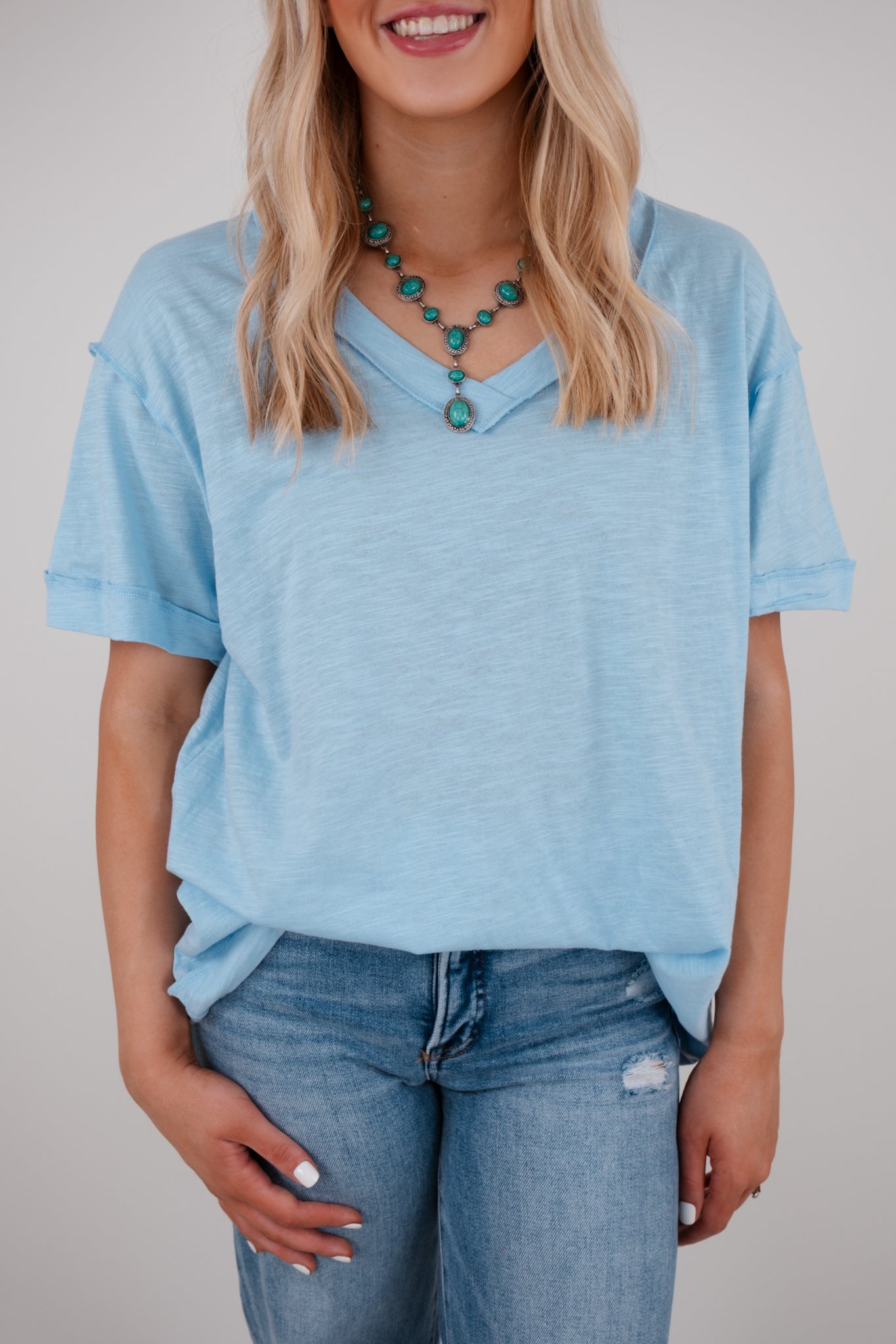 The Essential V-Neck Tee - Light Blue