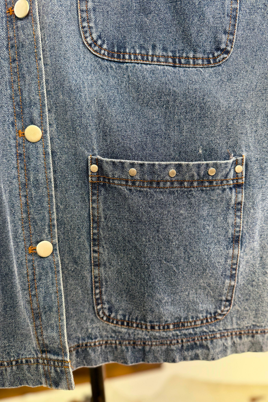 Medium wash denim body with structured fit