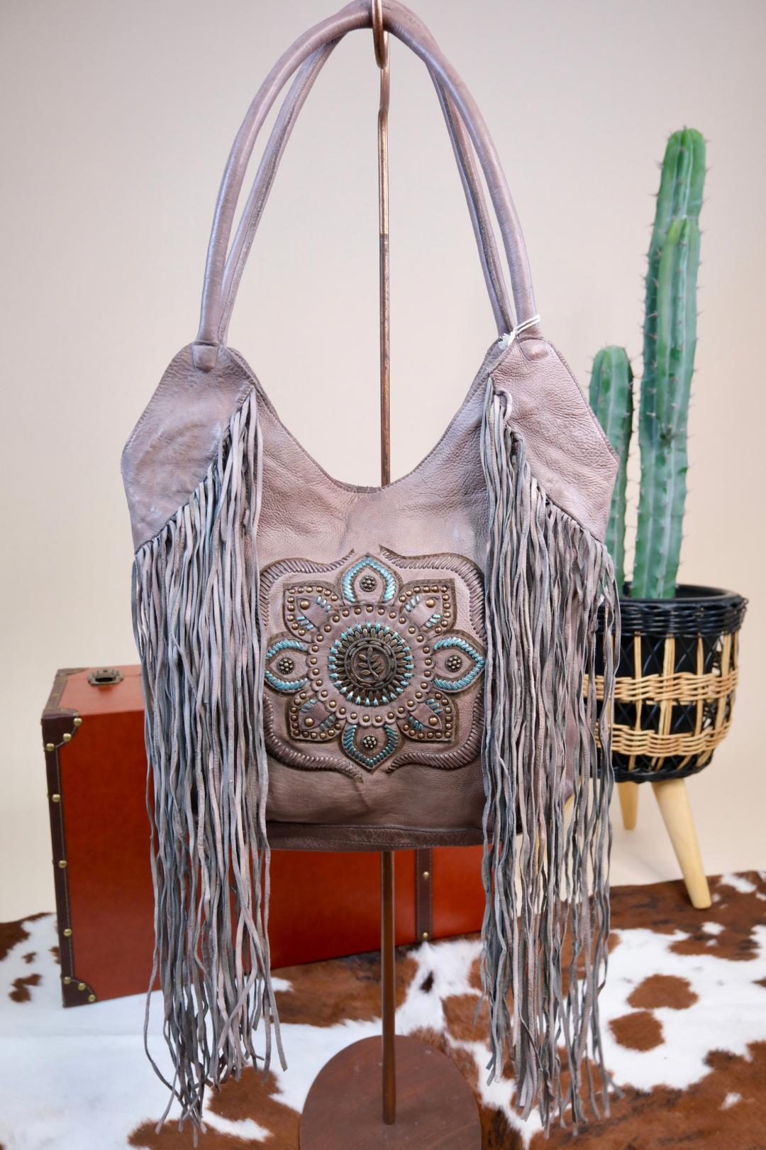 The Turquoise Bloom Leather Tote is a statement piece made for cowgirls who carry confidence with every step. Handcrafted from genuine leather, this large purse features long, sturdy arm straps for comfortable everyday use and flowing fringe along each side that adds movement and unmistakable western charm.
